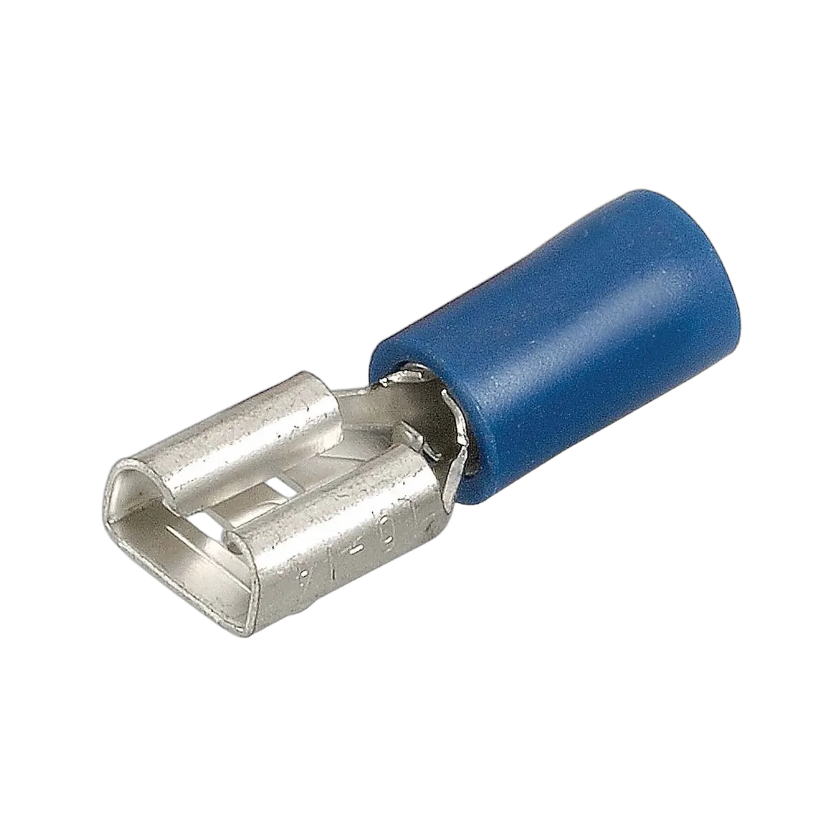 Female blade terminal, flared vinyl insulated.