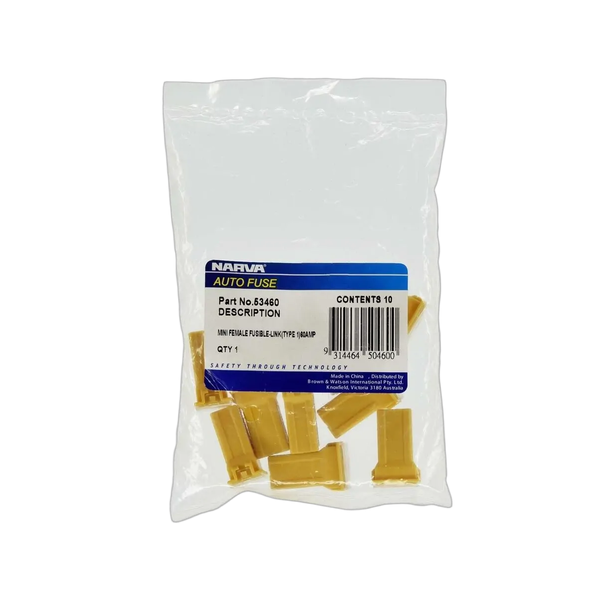 Narva 60 Amp Yellow Mini Female Fusible Link - Plug In (Box Of 10)