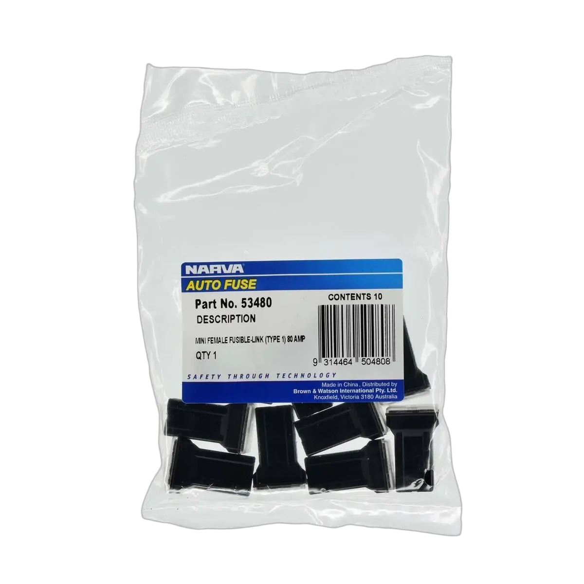 Narva 80 Amp Black Mini Female Fusible Link - Plug In (Box Of 10)