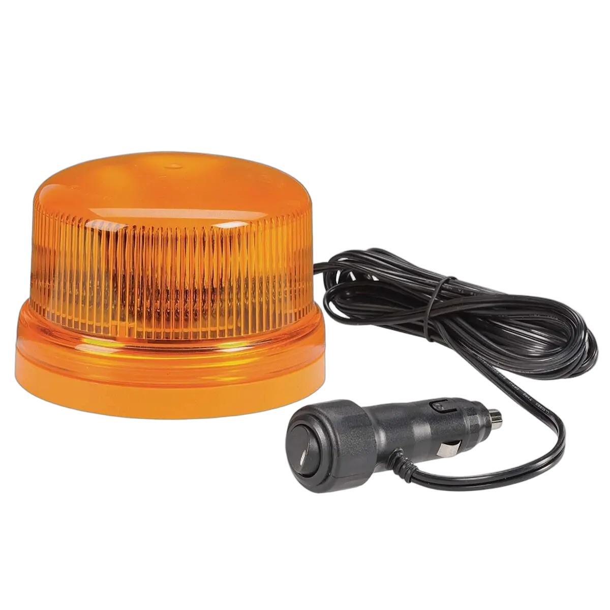 Dual voltage circuitry, polycarbonate lens, vibration resistant, solid state circuitry & fully sealed to IP65, SAE Class 2 light output, reverse polarity protected. Magnetic base includes a rubber pad and 3m straight lead with cigarette lighter plug and Off/On switch.