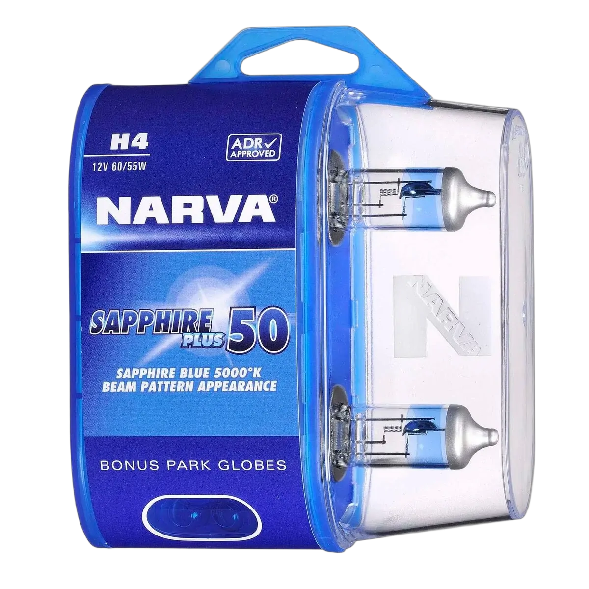 Narva H4 12V 60/55W Sapphire Plus 50 Halogen Headlight Globes (Bl2)