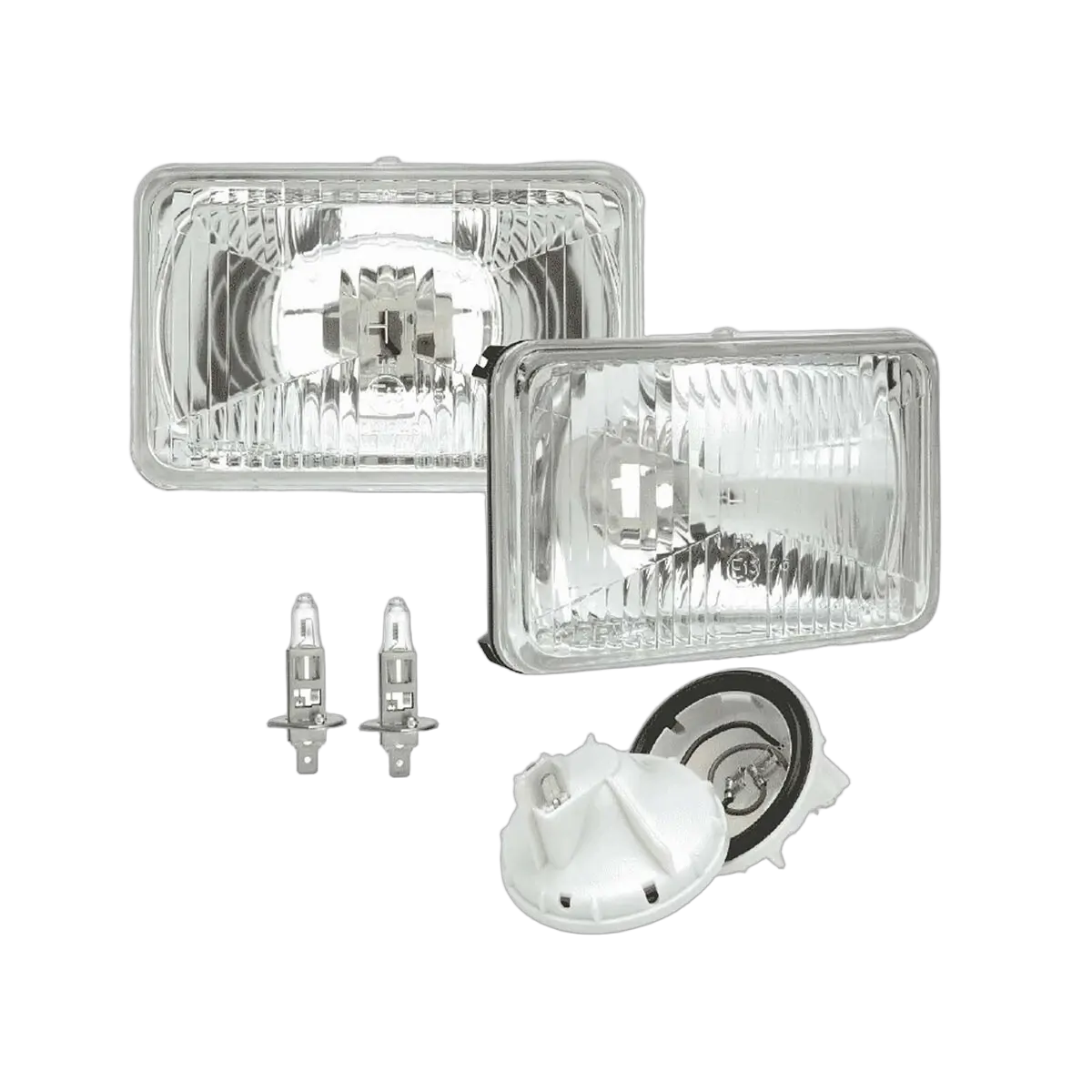 COMPRISES 2 x headlamp inserts (P/No. 72076); 2 x 12V H1 100W globes (P/No. 48350); 2 x dust covers;