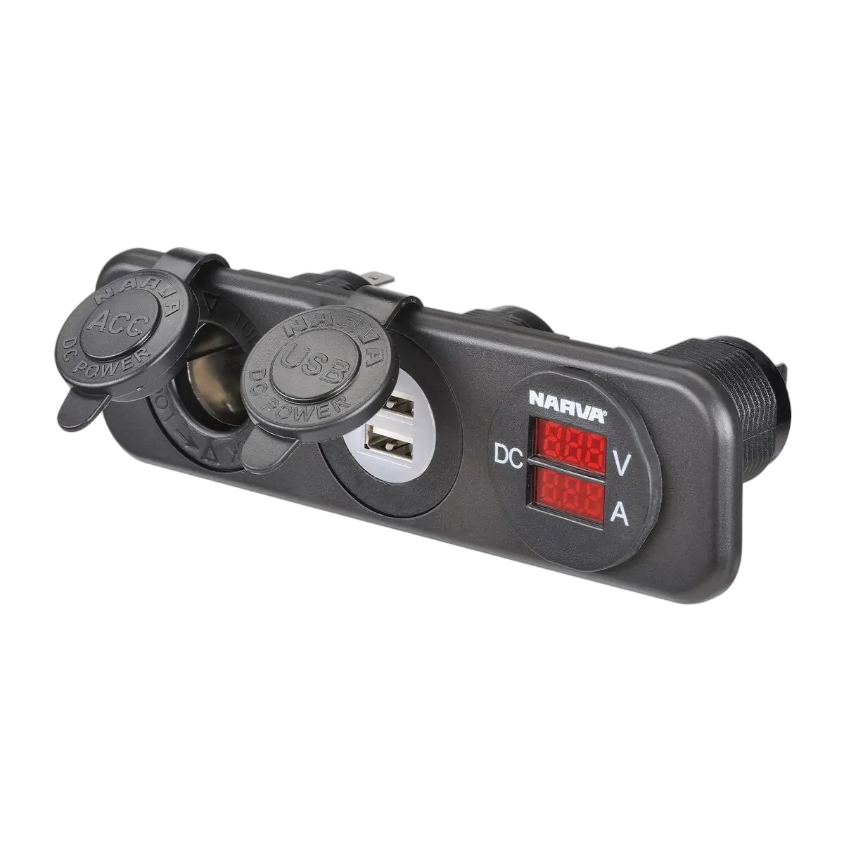 Narva Heavy-Duty Accessory /Dual USB Sockets & 12/24V DC LED Amp/Volt Meters