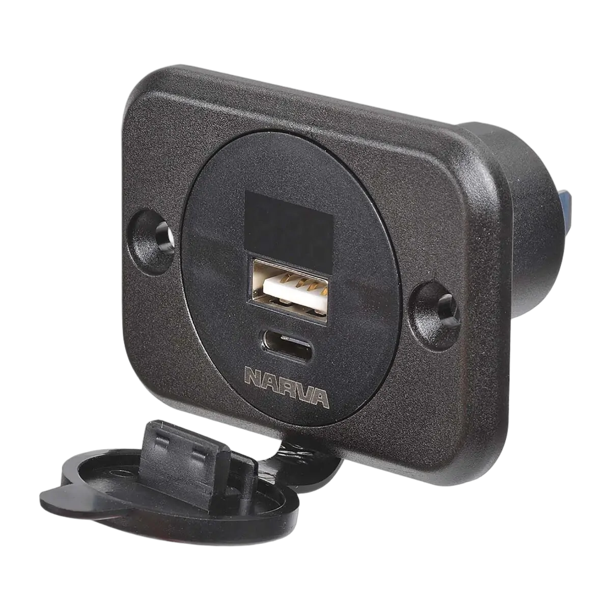 Narva Heavy-Duty USB/USB-C Socket With Volt/Amp Meter (Blister Pack Of 1)