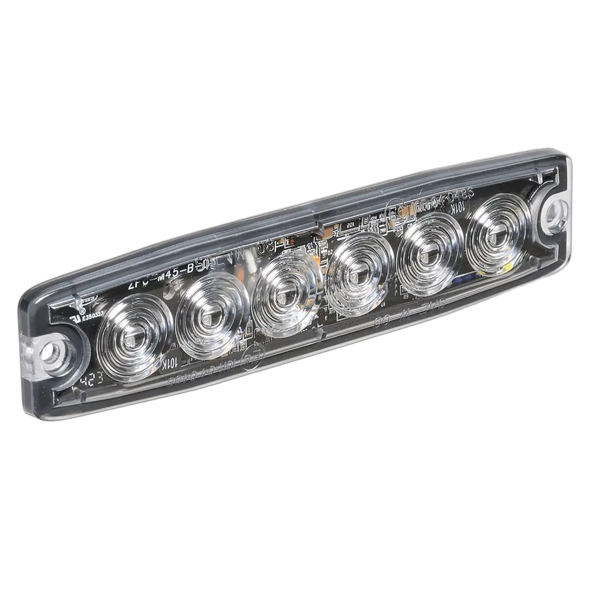 Features: Ultra low-profile slimline design utilising six high powered 1W L.E.Ds. 23 selectable flash patterns can be alternating or synchronised and a non-volatile memory retains last setting. Auto-dim function makes the lamps suitable for night operation. Supplied with 200mm of prewired cables,ƻM® tape or screws for fixing options