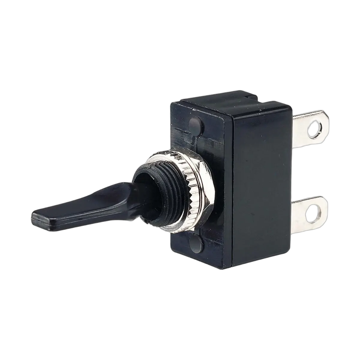 SPDT, push on terminals Amperage rating 15A at 12V, 7.5A at 24V Mounting opening 12.5mm dia.