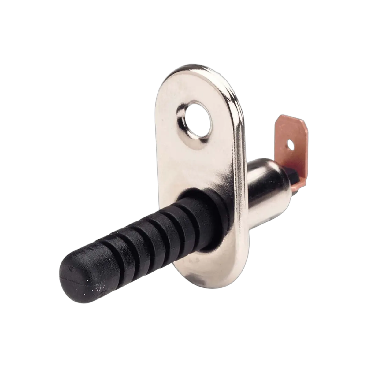 Extended arm suitable for cutting to length Push on terminal Amperage rating 10A at 12V, 5A at 24V Mounting opening 9.5mm dia. Switch contacts normally closed