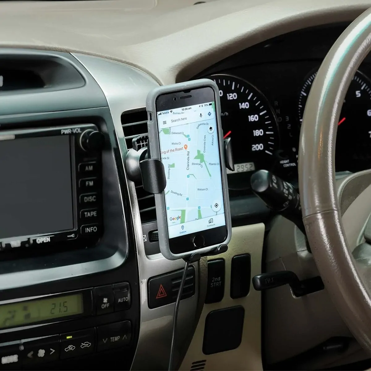 The air vent mounting and gravity lock system securely holds your phone and charges it while you drive. Ideal for charging your device while you use it for maps, hands free calling or messaging without touching your phone. To remove from holder simply lift the phone up. Includes 1m USB cable