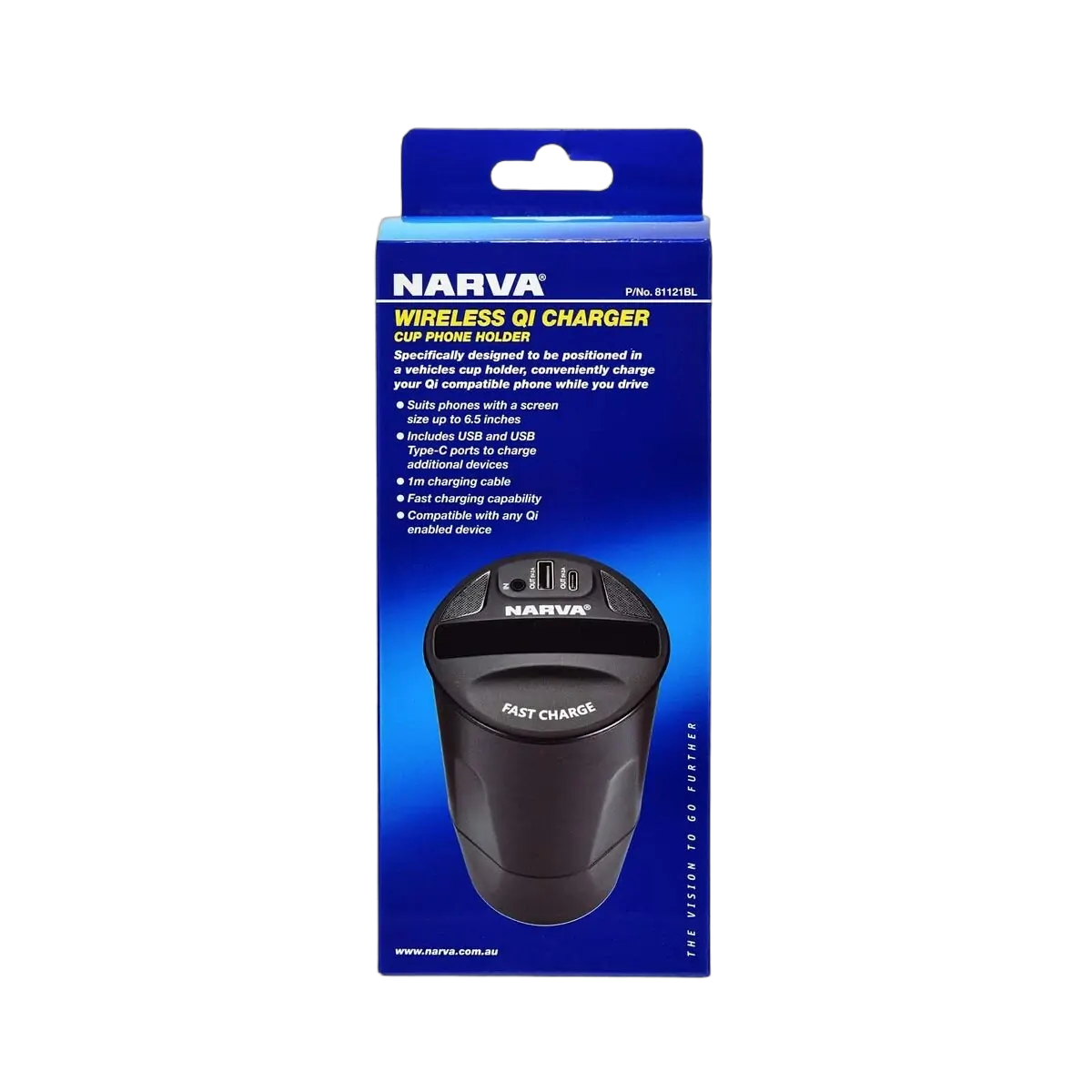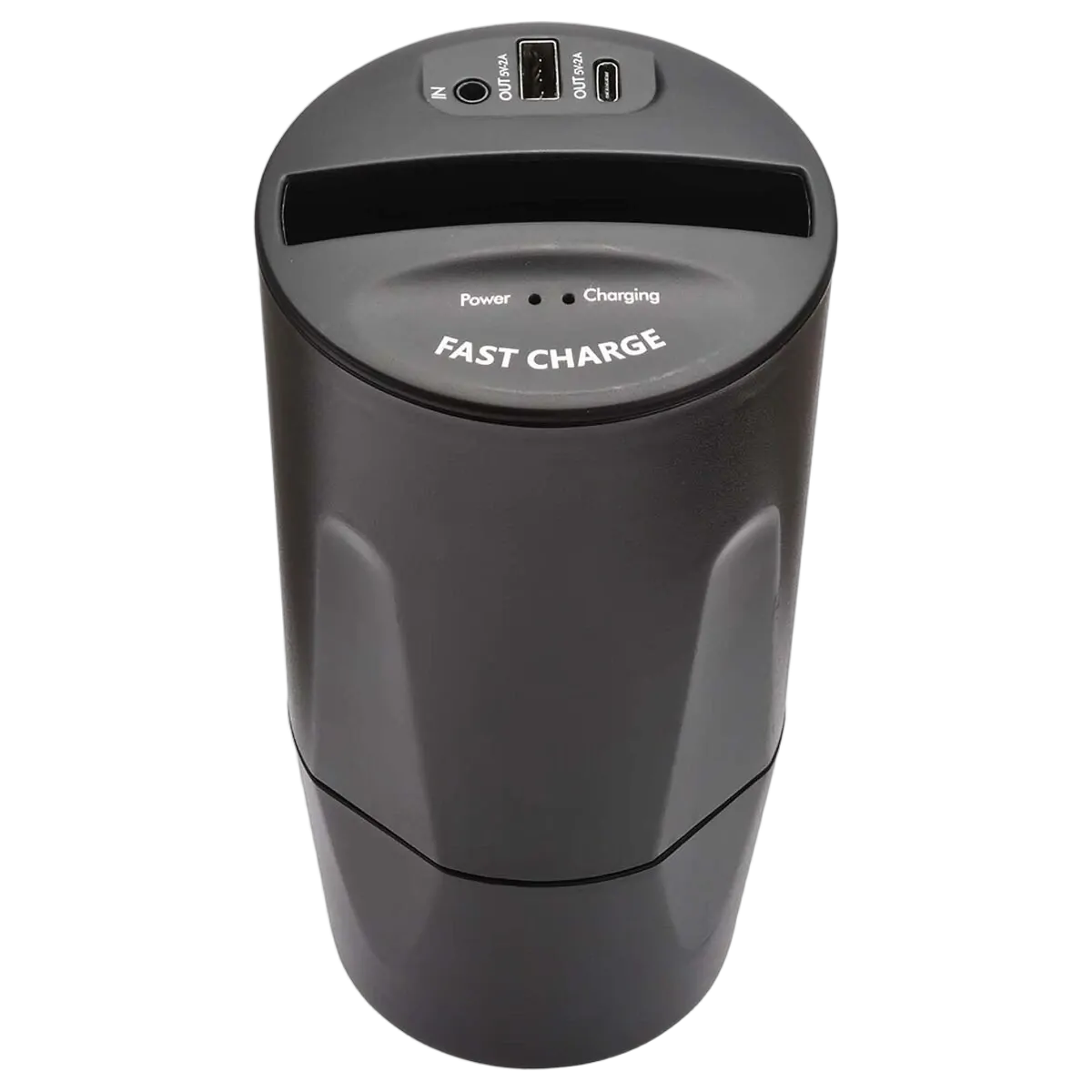 Mounts in the car’s cup holder to hold and charge Qi compatible phones while you drive. Phone slot designed to fit phones up to 6.5” in screen size. Includes USB and USB Type-C slot to charge other devices. Fast charging capability. Includes 1m USB cable