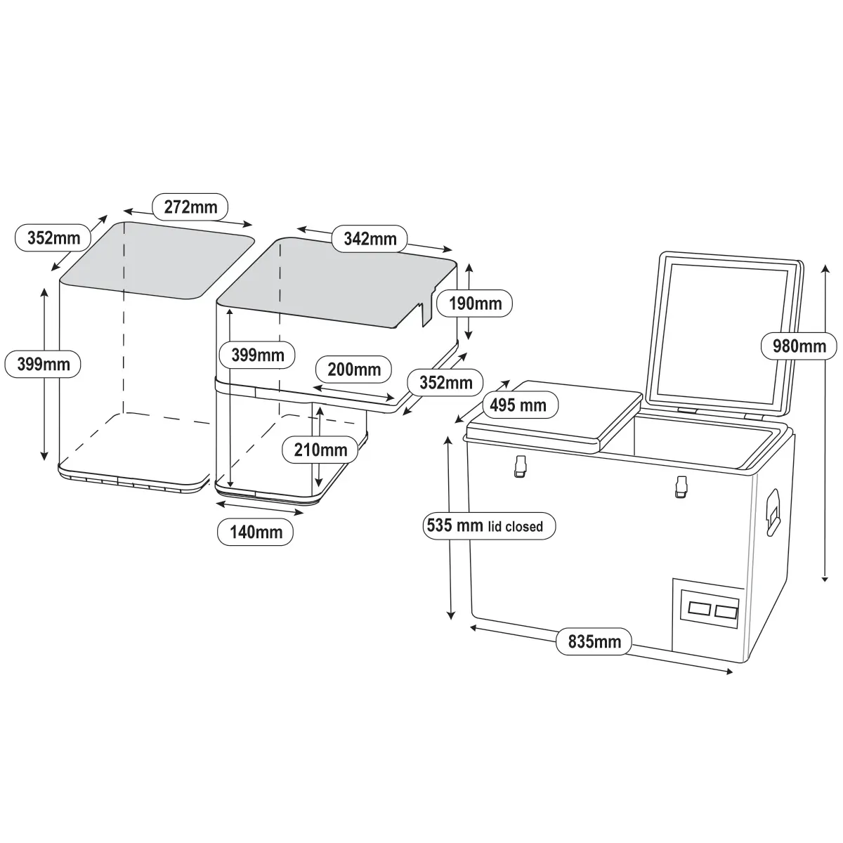 Right Lid Dimensions: 475 x 435mm