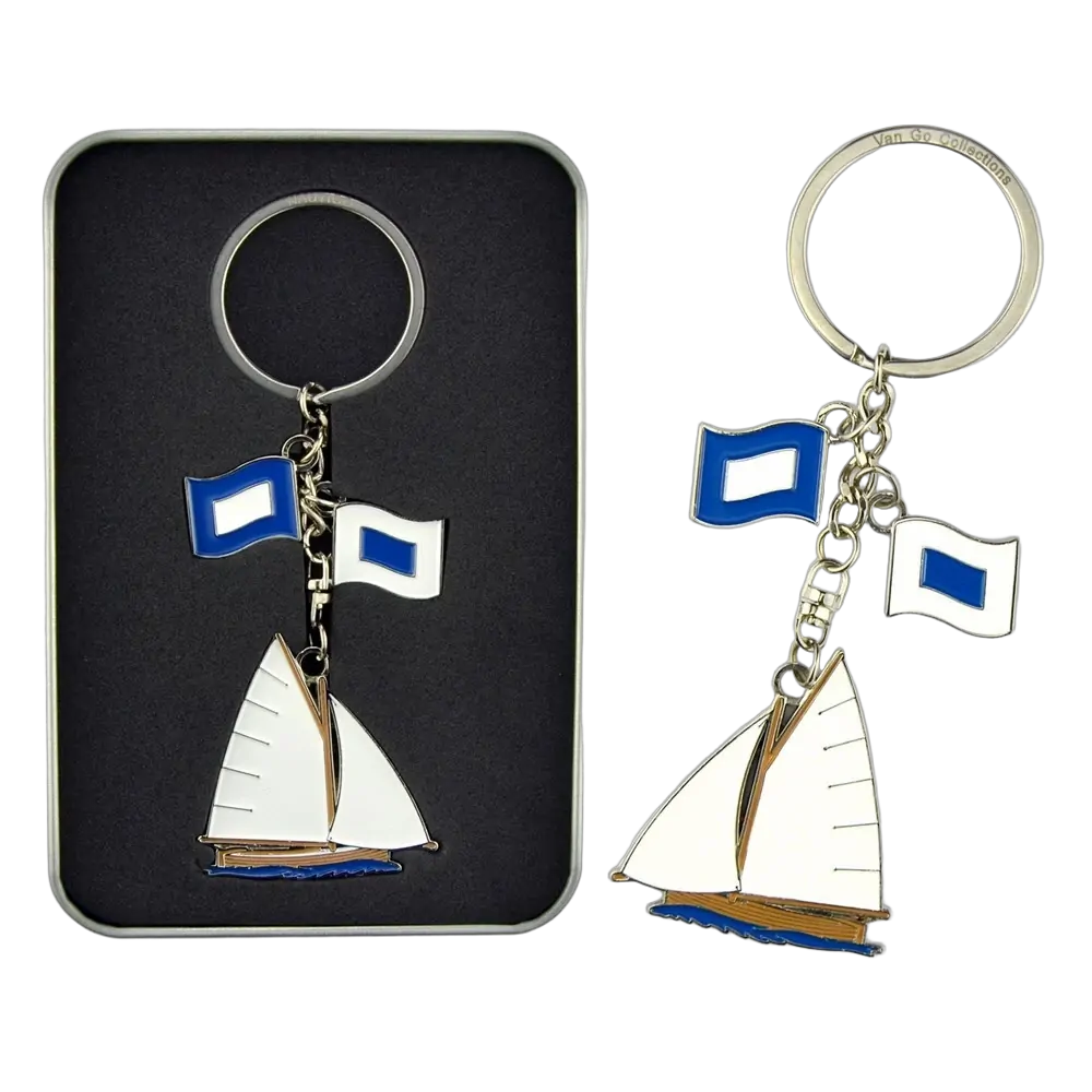 Presented in a reusable metal gift box with our logo embossed in the lid, or keyrings are made from durable metal, with vibrant enamel colouring and a swivel chain. These boating keyrings are the perfect gift for friends, family and those who appreciate great design.