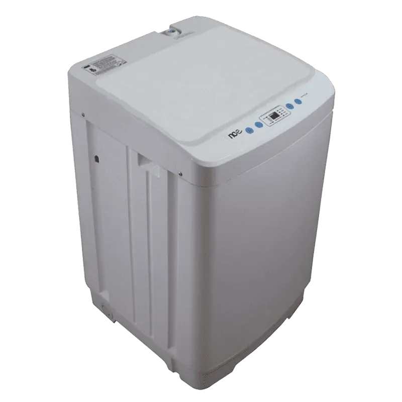 Top load 240V washing machine specifically designed for the RV industry, featuring 5 programmable wash settings including gentle wash through to full cycle. LED display, unbalance detection, and basket with lockable tabs.