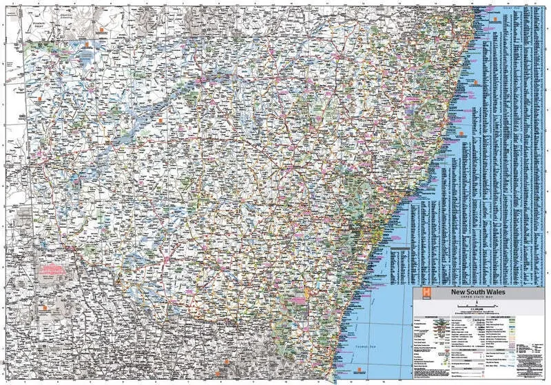 A state map of New South Wales (NSW) that is an ideal travel reference and wall map. This Supermap comes in size 1430mm x 1000mm and is unlaminated. These New South Wales Supermaps does not have symbols making it easy and convenient for reading.