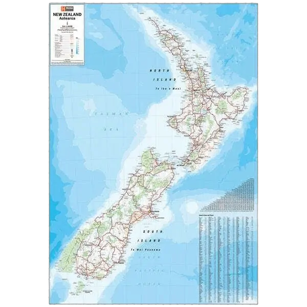 New Zealand Map Laminated - 700x1000mm (6th Edition) - A laminated map of New Zealand (NZ) that is perfect on a wall or as a travel reference.