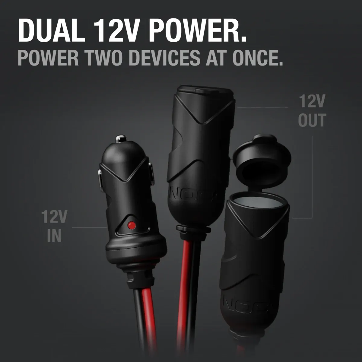 WARNING: California’s Proposition 65 Technical Specifications. Input 12 Volt Male Plug Adapter Output (2) 12 Volt Female Plug Adapters Wire Size 16 AWG Length 11.4 Inches Cable Length Between 12V In and 12V Out Ports 6.3 Inches Max Distance Between 12V Out Ports 10.6 Inches Compatible With GC003