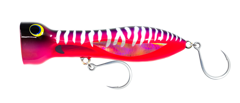 The CHUG NORRIS 180mm popper is super easy to pop, it hangs in the water and will not ‘pull out’ when popped. This popper is all about being easy to use, and it does not require much effort to get a very big pop due to the unique body shape and hydrodynamic design. It can also be worked with subtle small pops and twitched across the surface. Whatever application, you will find the 180mm Chug Norris popper one of the easiest to use and most effective poppers available. Featuring a machine-stamped stainless-steel plate, diamond armour internal mesh system & full body foam core construction, it is one of the toughest lures available, and is up to any challenge.