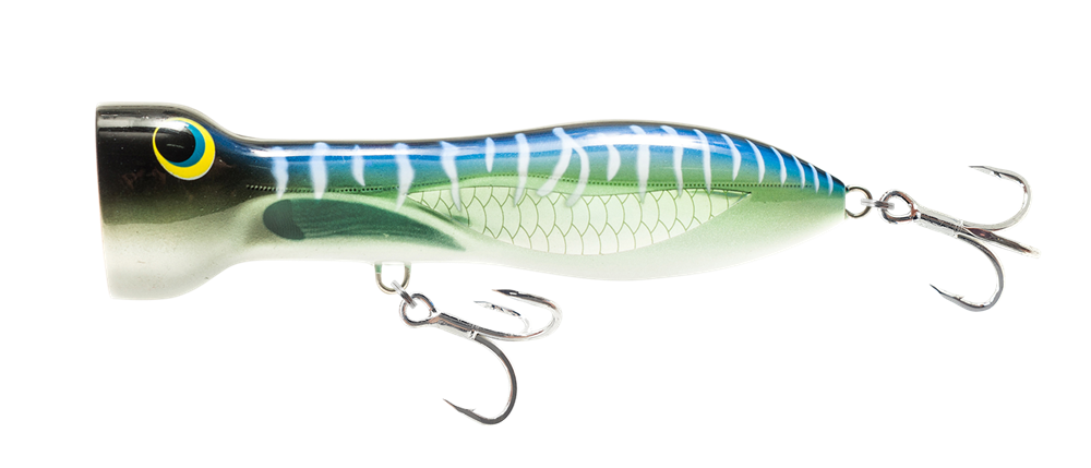 The CHUG NORRIS 95mm popper is super easy to pop, it hangs in the water and will not ‘pull out’ when popped. It has a unique “walk the dog” surface action which allows it to be worked super slow to entice a bite or faster with bigger pops. This popper is all about being easy to use, and it does not require much effort to get a big pop due to the unique body shape and hydrodynamic design. It can also be worked with subtle small pops and twitched across the surface. Whatever application, you will find the 95mm Chug Norris popper one of the easiest to use and most effective poppers available.