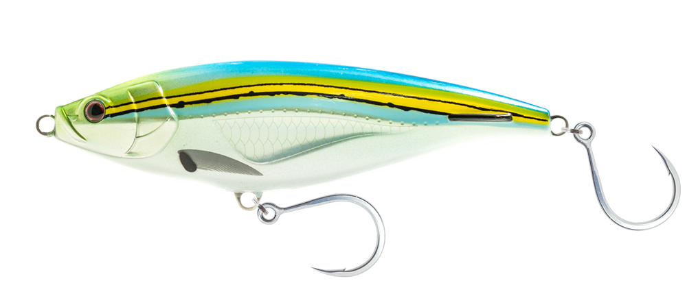 The MADSCAD 115mm is a must have in every tackle box. This was the first lure launched by Nomad in 2015 and has cemented itself as a fish catching weapon in any situation. It is a sinking stickbait that can be worked slow or fast with long or short twitches of the rod tip. A stop start retrieve creates an erratic swimming action that fish simply cannot resist. It is also a long-distance casting stickbait ideal for nearly every saltwater species. If you were to choose one lure to catch the most variety of bluewater species, then the Madscad 115mm is the lure.