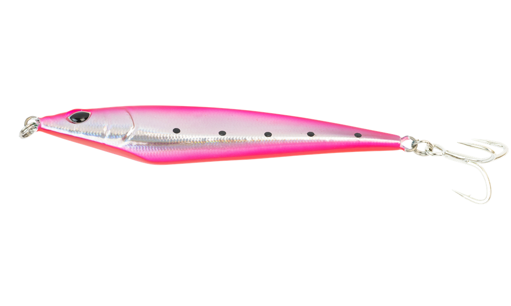 The angled head design creates an erratic sideways darting movement with each wind of the reel. The weighted belly shape makes easy distance casting from shore or on a boat – ensuring you can get to where the fish are feeding! Fitted with Ultimate BKK Hooks to be fished straight out of the packet.