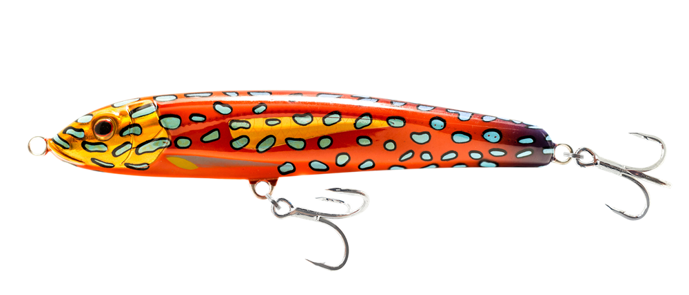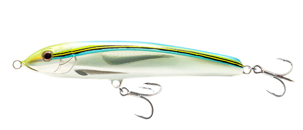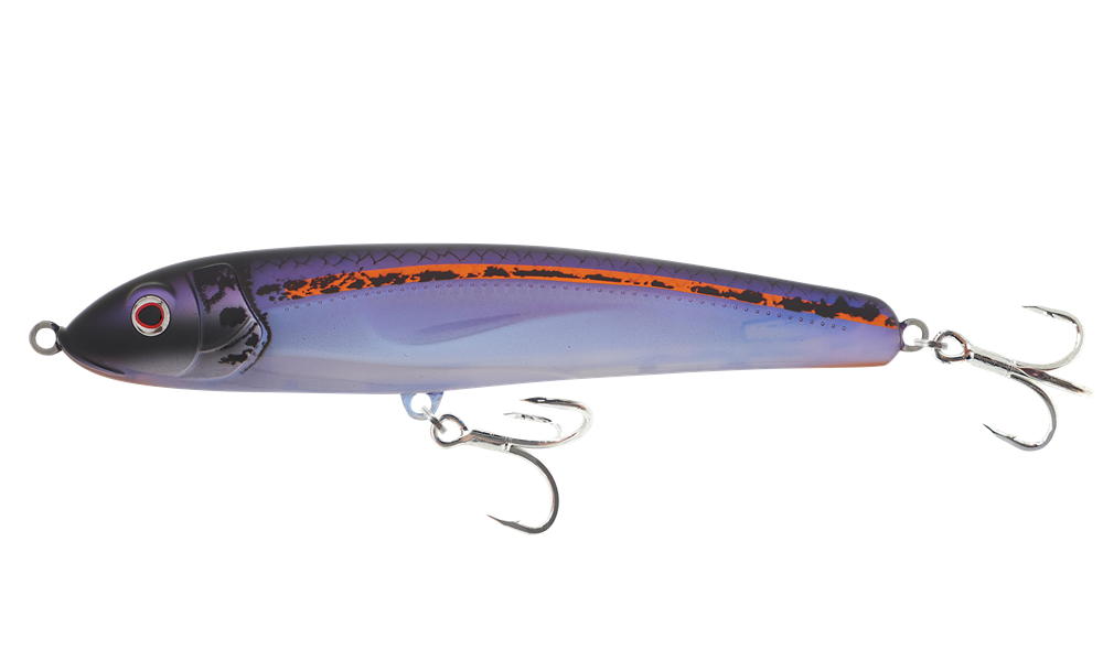 The RIPTIDE 125mm sinking stickbait is an ideal sinking stickbait for Kingfish, Mackerel, Tuna, Queenfish, GT’s, Barramundi and any other inshore saltwater predator. It has been designed to sit level, and slowly sink, when paused on the retrieve, to mimic a wounded baitfish. The placement of the internal weights also means that when twitched in a “walk the dog" style retrieve, it has an incredible side-to-side action, turning nearly 180°. It can be fished fast or slow, in rough or calm water and is a hugely versatile lure with a variety of retrieve styles.