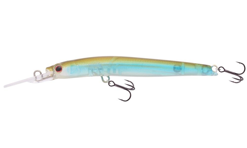 Designed to suspend in saltwater the STYX MINNOW 70mm is perfectly balanced for casting and working as a shallow jerkbait. It has a seductive body roll and tight wiggle and is perfect when used with a twitch and pause retrieve. It can be made to suspend in freshwater by using size #14 trebles. The internal weight system allows maximum casting distance and allows perfect balance to suspend level when twitched. The Styx 70mm is a Flathead catching weapon and also performs extremely well on Bream, Bass and Mangrove Jacks.