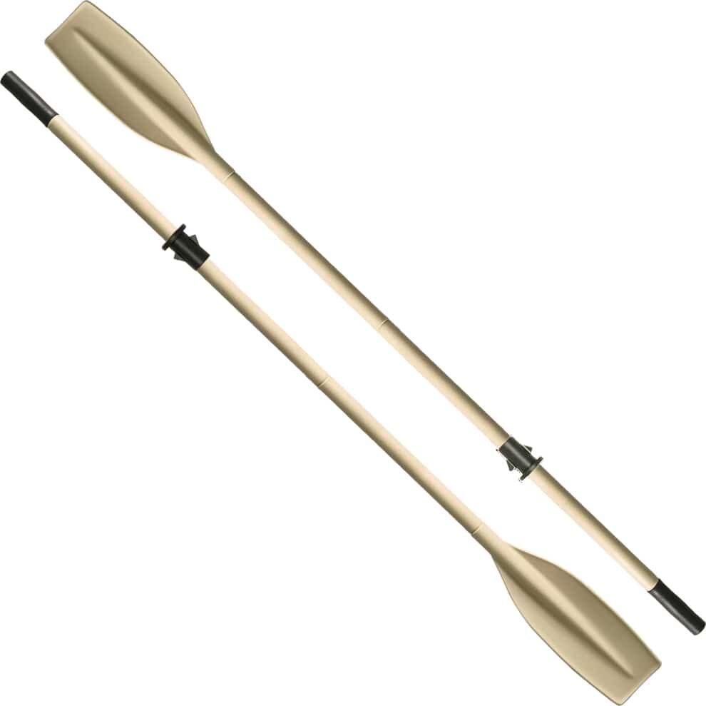 - Rubberised hand grips and oar stops.