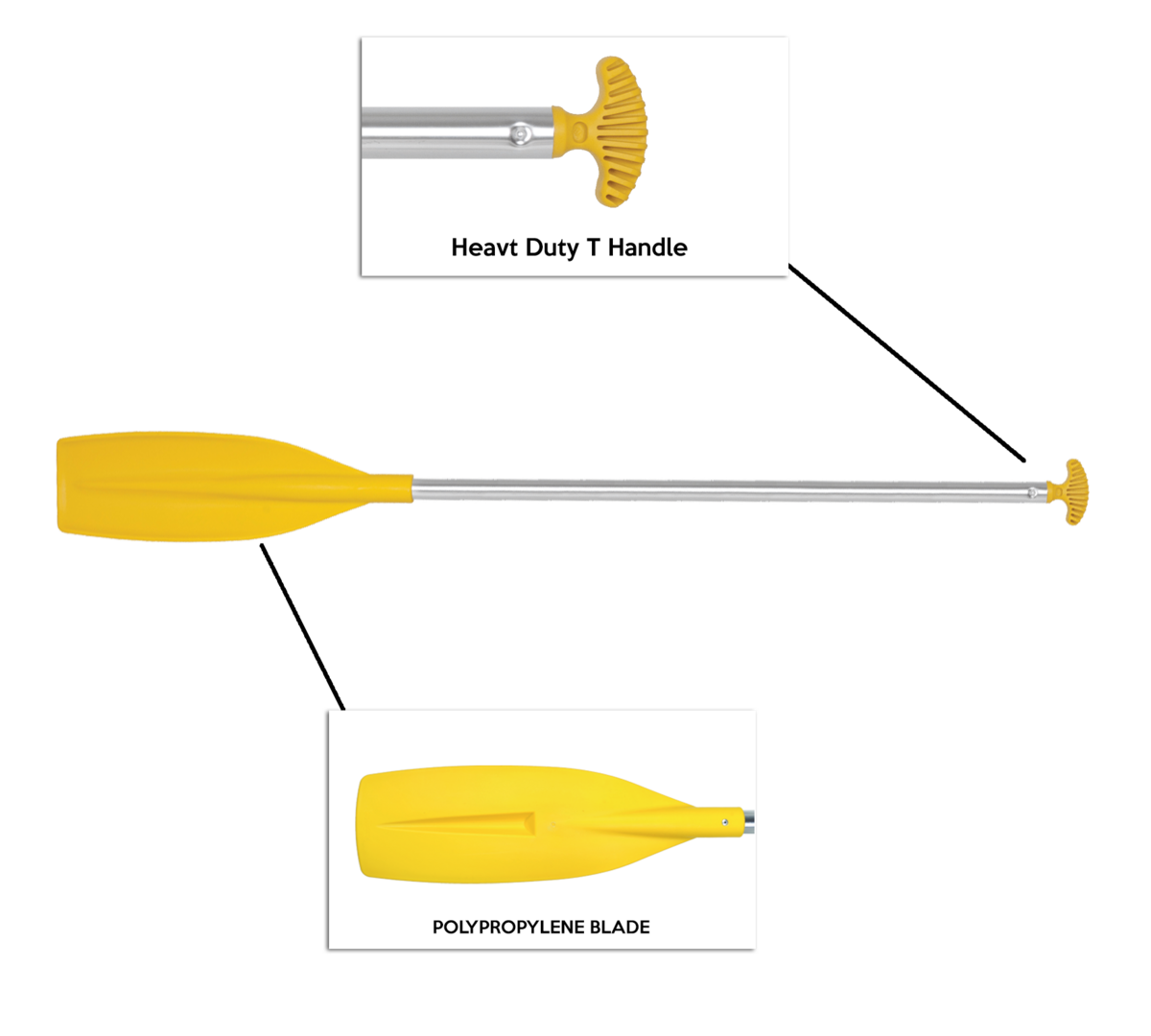 Heavy Duty Paddle with T-Handle available in two sizes. Anodised alloy shaft 35mm, Polypropylene blade. Very strong and tough paddle.