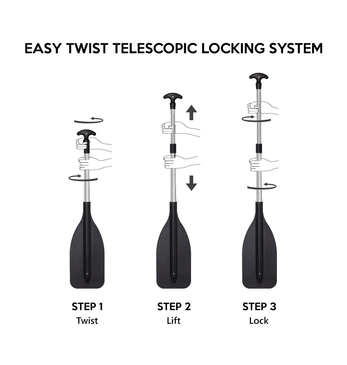 Oceansouth telescopic paddles offer a fool proof twist design and marine-grade polypropylene blades for durability.