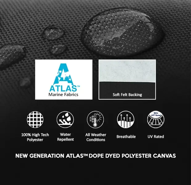 - Made from advanced, water-resistant, UV-treated, and breathable 350g/m² Atlas Marine Grade Fabric