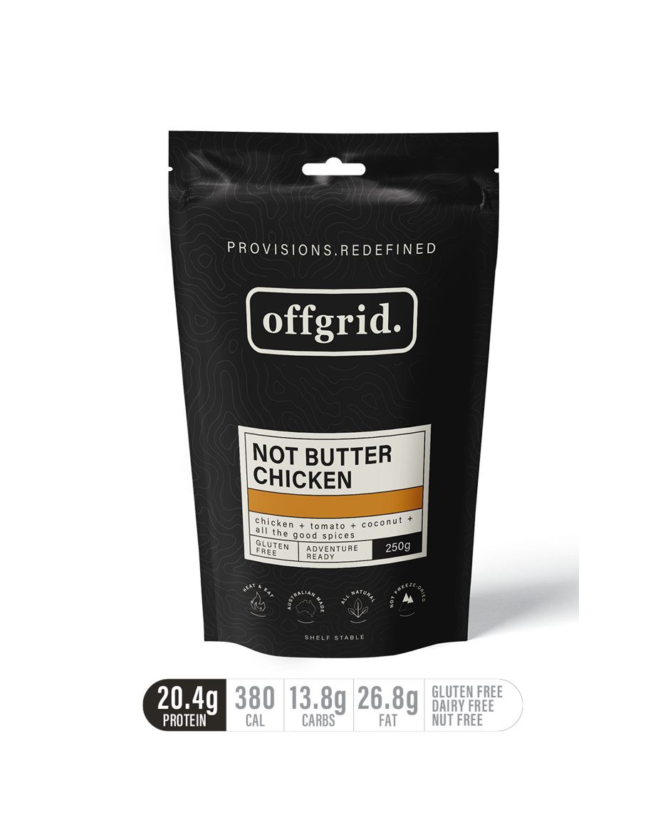Batch made Butter chicken, a recipe that will transport you to flavour town, Not butter chicken is dairy free, made on coconut creme, its got added protein with perfectly cooked green lentils and fragrant notes of toasted carawa, Add our Good Rice and create the best meal in the camp.