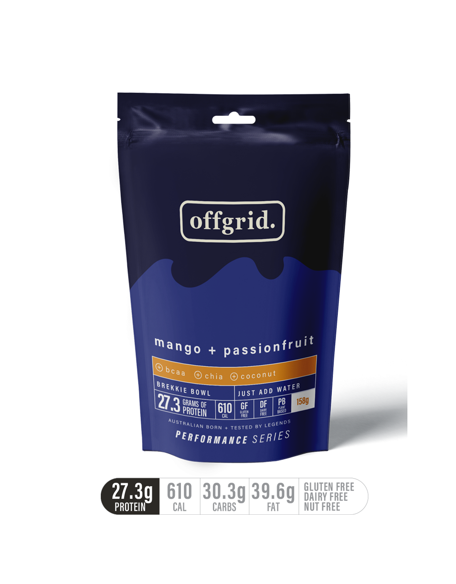 Offgrid plant based PERFORMANCE SERIES brekkie bowls are formulated for the early bird on the go. Packed with goodness, with added BCAA's to reduce muscle fatigue, organic pea proteins to keep you at your best and each recipe is made with natural fruits, assorted seeds, toasted grains and superfoods. Supercharge your day - Just add water
