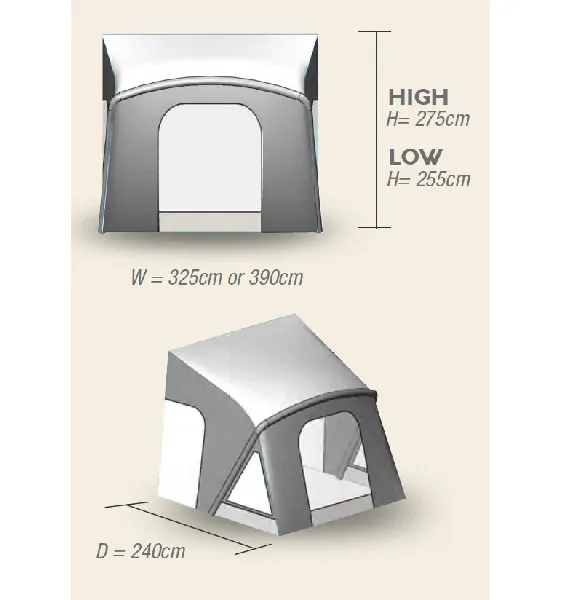 It is manufactured using high-strength waterproof 300D micro weave poly cotton canvas. Its lightweight structure and modern curved design make it very robust for optimal performance in high winds. The Orbit Air Astro Annexe provides an additional living or storing area while camping or caravanning.