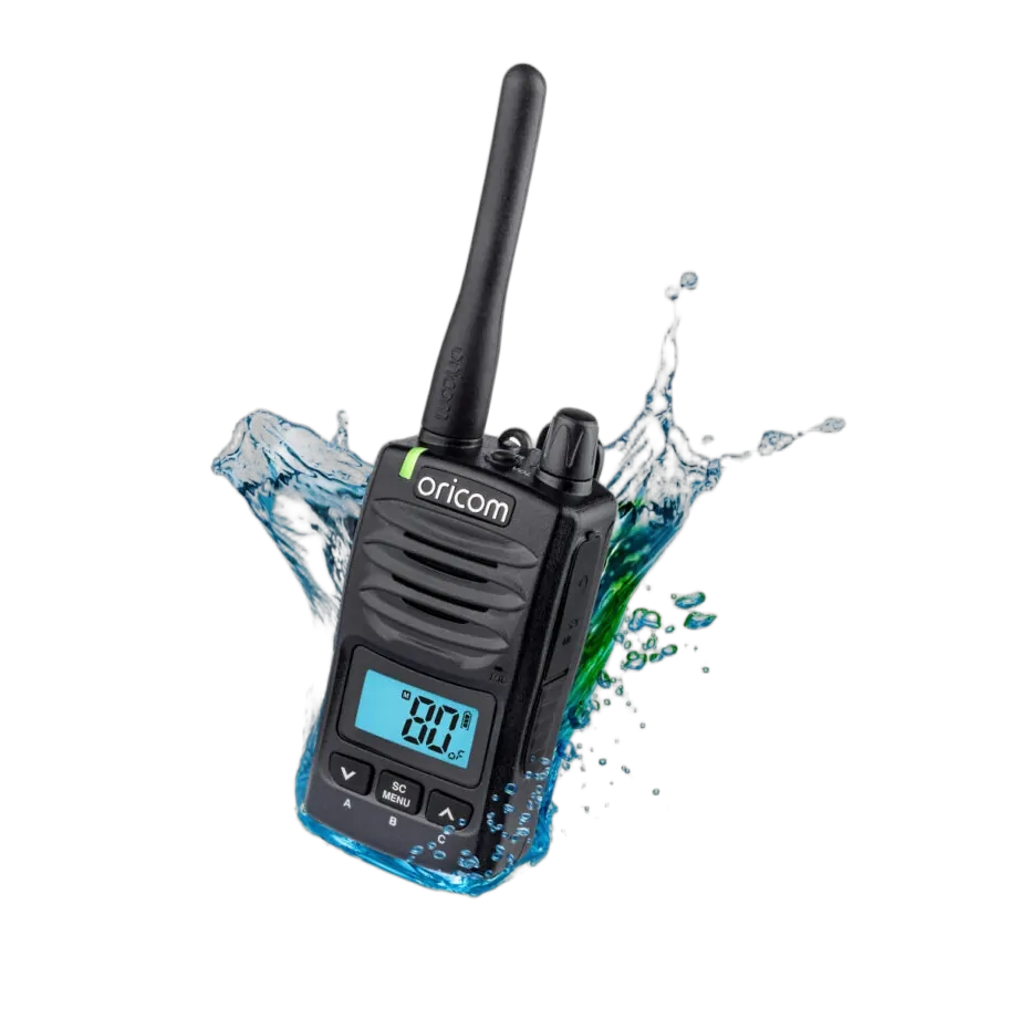 Water and dust proof rated to IP67, this radio will go wherever you need it to, ensuring reliable communication no matter what the situation. Water and dust proof IP67 rating Compact radio with large backlit LCD display Switchable RF power (high: 5 watt, low: 1 watt) 3 Programmable instant channel buttons 80 channels Fast charge technology supplied with 240v and 12v adaptors Open/instant/priority scan Die-cast metal chassis Duplex (range extender) Signal monitoring Triple watch Audio scrambler Key lock function Squelch tail on/off 38 CTCSS and 104 DCS codes High-capacity 2600mAh Lithium-ion battery pack (up to 30 hours operating time^) Rotary volume control 2.5mm jack socket with locking screw for optional accessories Designed, engineered and produced in Korea