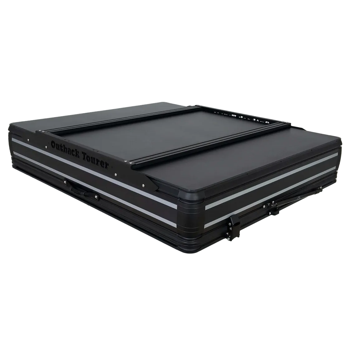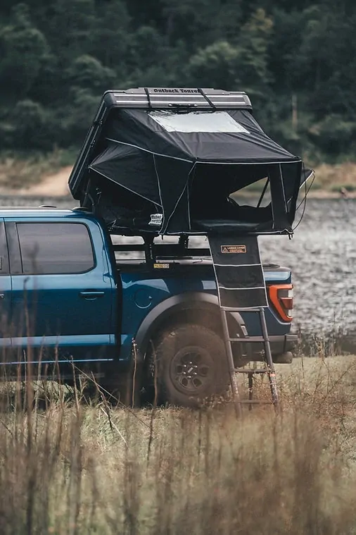 Embrace the sleek elegance of our redesigned rooftop tent, featuring laser-cut logos in the shell. The meticulous detailing adds a touch of sophistication, reflecting our commitment to quality craftsmanship. The shell itself has undergone a complete transformation, boasting a cleaner, more refined look. Plus, the addition of distinctive grey strips signals that you're in the presence of an Outback Tourer, setting you apart as a true adventurer.