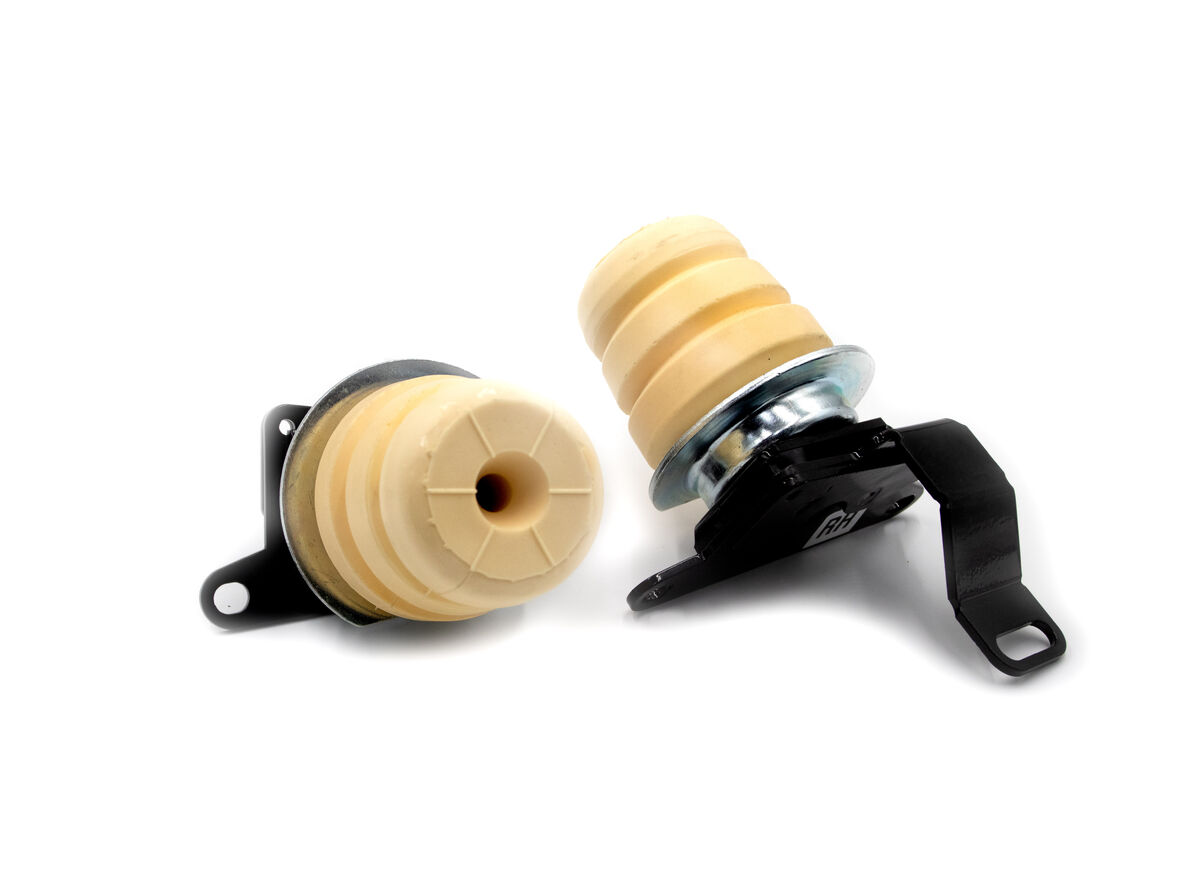 This rear bump stop kit includes progressive rate engineered foam bump stops and fabricated brackets to suit direct replacement.
