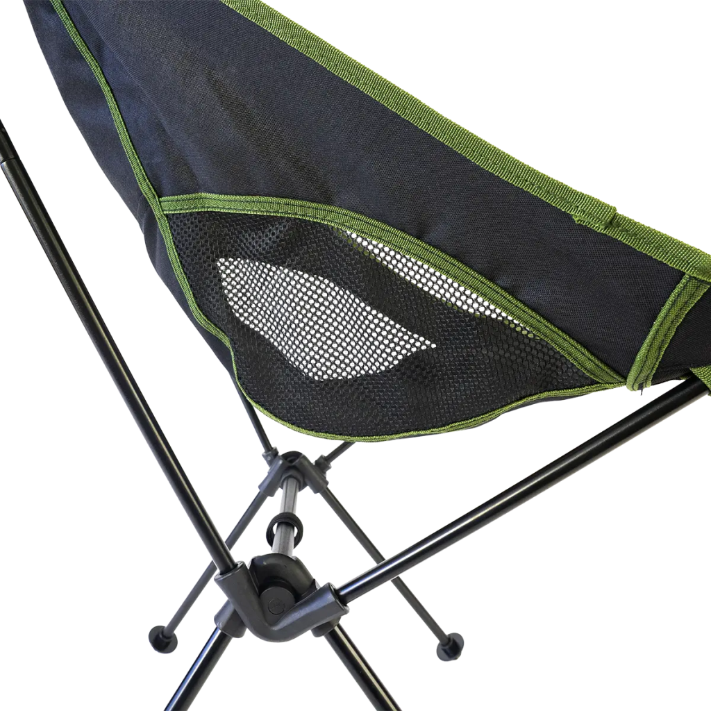 Featuring a high backrest with a built-in neck pillow that provides ample support for your entire back, this chair is perfect for those who want to relax and enjoy the great outdoors without sacrificing comfort. The chair is designed to keep you comfortable no matter how long you sit, so you can spend more time enjoying nature and less time worrying about your back. The chair is built with a 7075 aluminium frame with a 120kg weight rating, and it folds up super easily for transport and storage.
