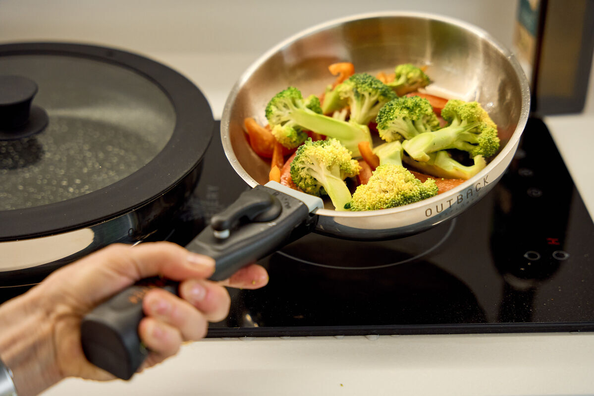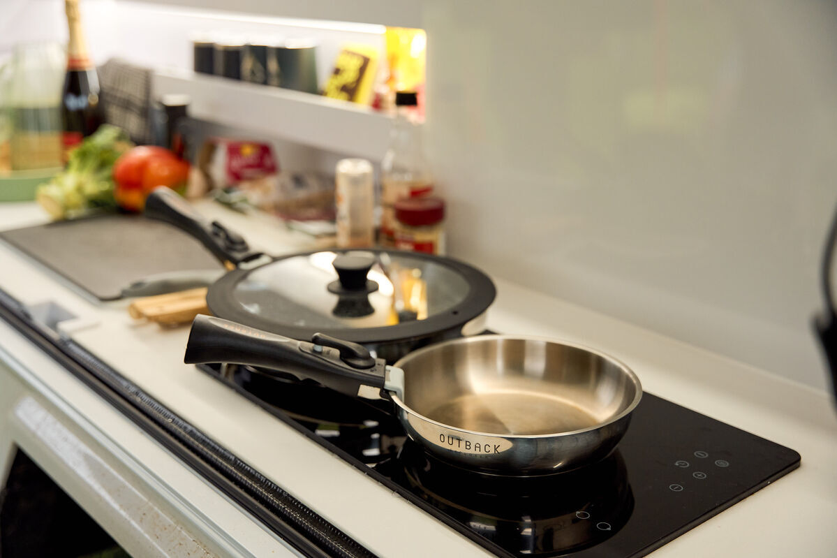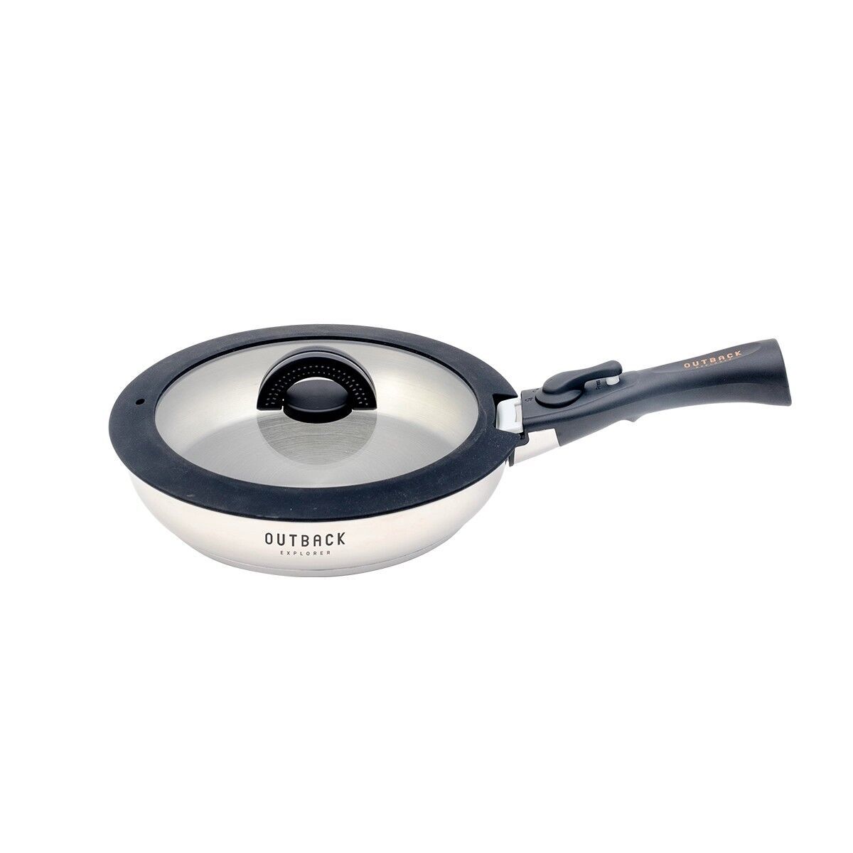 The Outback Explorer Stainless Steel Cookware Set, paired with the OUTBACK EXPLORER CARRY BAG, offers an unparalleled combination of convenience, durability, and ease of use for campers and caravanners. Designed to make cooking and storage effortless while on the road, this set features removable handles, keep-safe lids, and a Stainless Steel Base. Its design is perfect for cooking in compact spaces and the removable handles aid in easy storage.