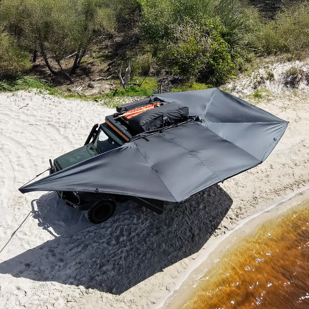 Introducing the Outback Tourer X-Tend — the latest evolution in our 270 awning range. Designed for those with compact setups, the X-Tend features innovative telescopic arms that expand from a sleek 1700mm closed length to full-size coverage at the click of a button. Whether you’re running a smaller fibreglass canopy or a compact wagon like a Jimny, this awning delivers serious shade without taking up unnecessary space.