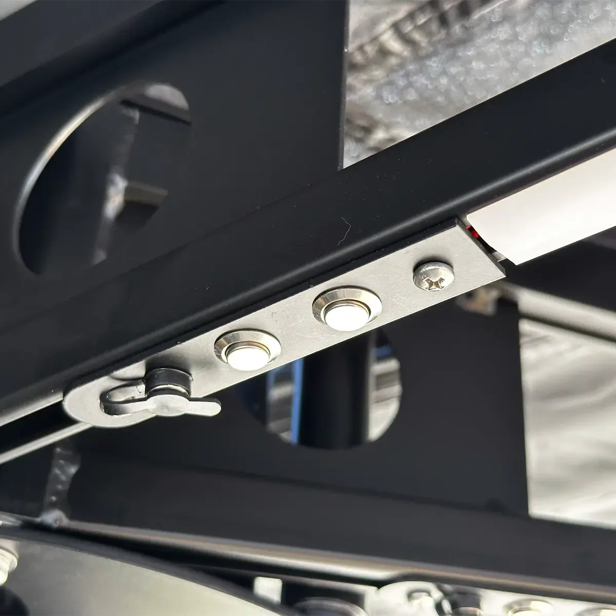- Black aluminium double truss arms with stainless bolts and nuts.