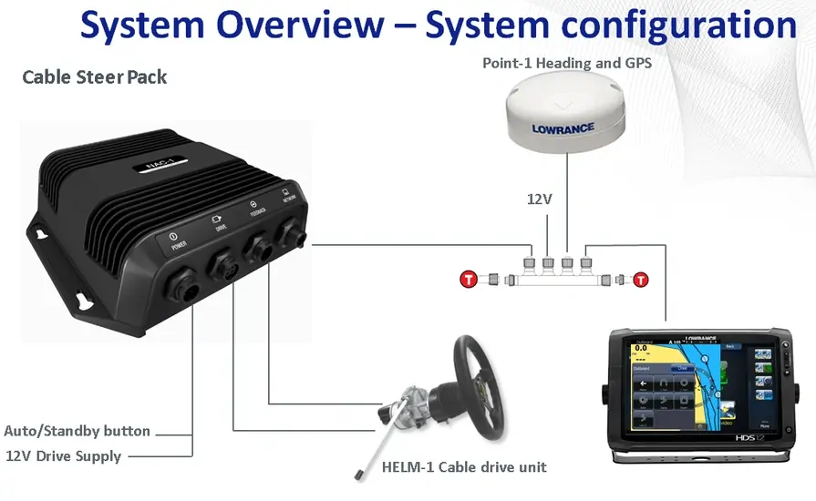 - Add a second Helm station to a boat using the HDS Power steer commands – no need for additional hydraulics + steering wheel.