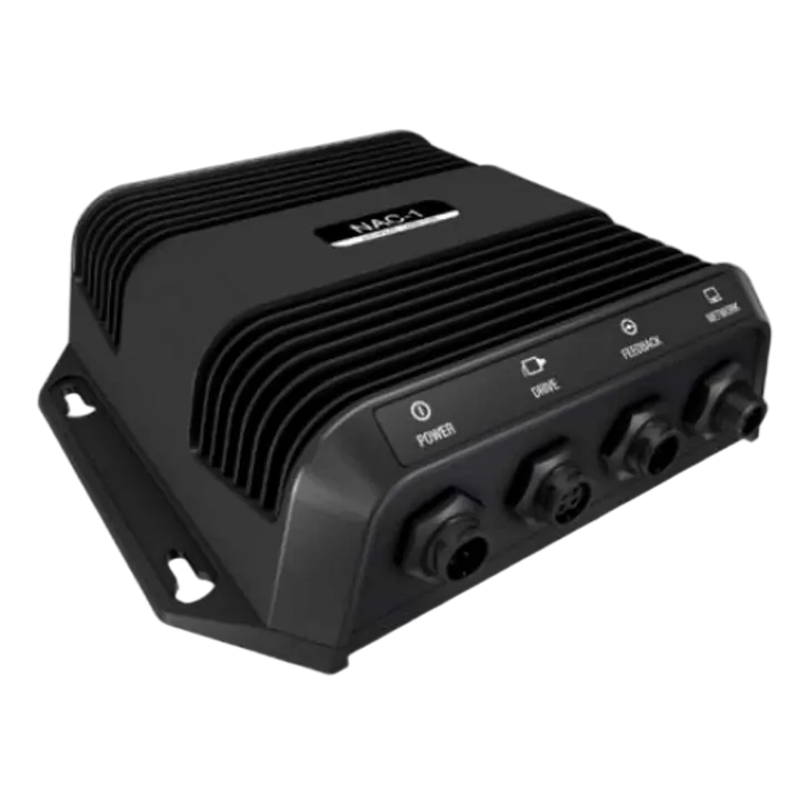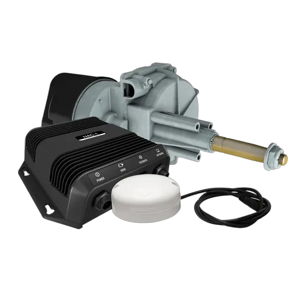 Outboard Pilot Cable steer Pack: Includes Point-1 Heading and GPS Sensor, NAC-1 Autopilot Computer, HELM-1 cable-steer helm drive unit , Standby-Auto button and Micro-C network components.