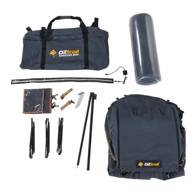 The Sundowner 900's freestanding design makes it a true overlander swag that's fast and easy to pitch. The near vertical walls and sturdy wide body provide more space than you find in most swags, and the 7cm high density foam mattress with removable, washable luxe flannel cover ensures a comfortable night's sleep wherever you roll out. Made to withstand the harshest conditions, the 420gsm Ripstop canvas and 600gsm PVC floor will keep you dry and stand up to years of use. The ClimaTech gusseted end windows increase airflow into the swag even in bad weather, and OZtrail's Lumos technology makes it easy to light inside with flexible strip lighting so you're not left searching for a torch in the dark.