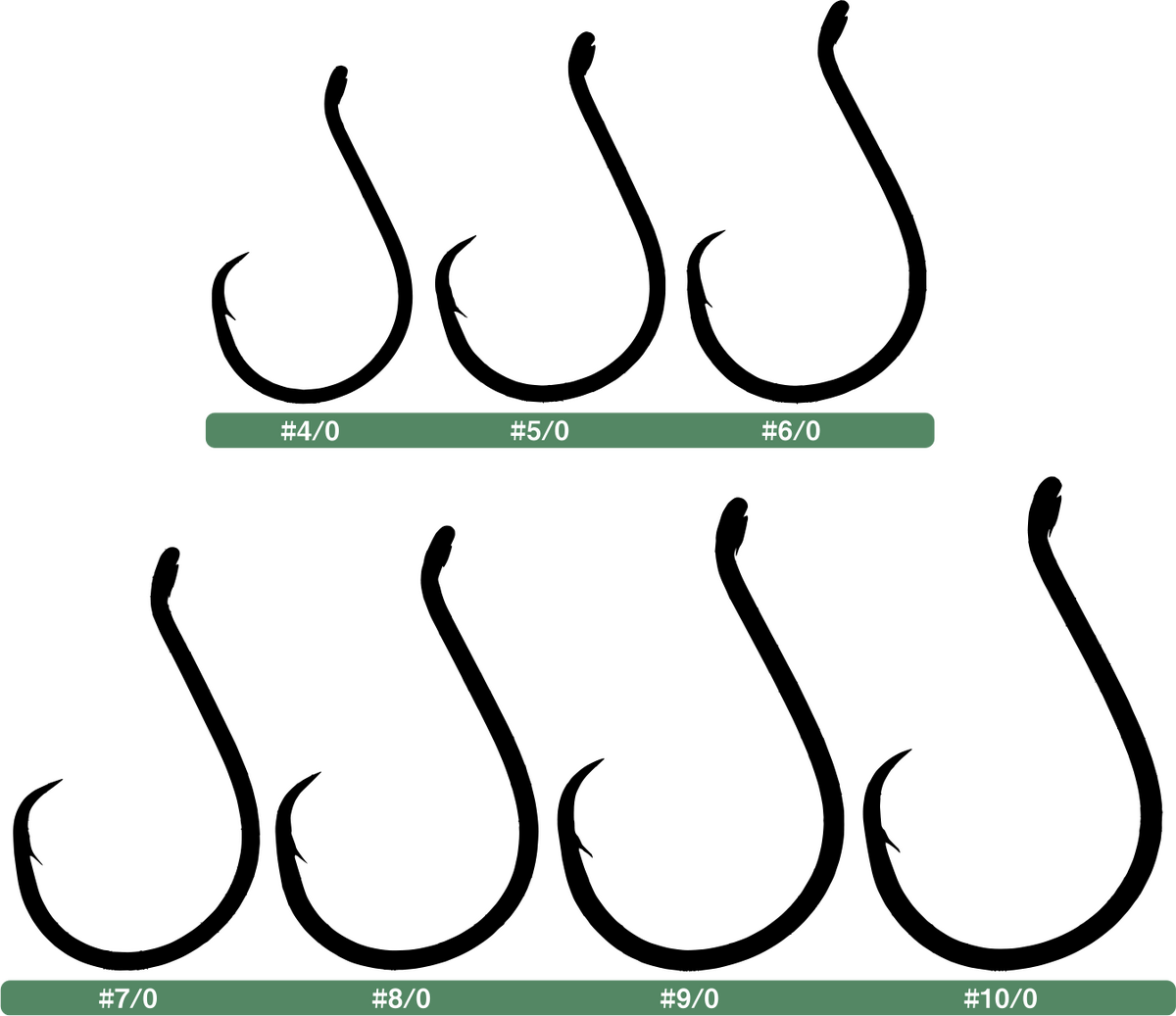 - HOOK SIZES: #4/0, #5/0 #6/0, #7/0, #8/0, #9/0, #10/0
