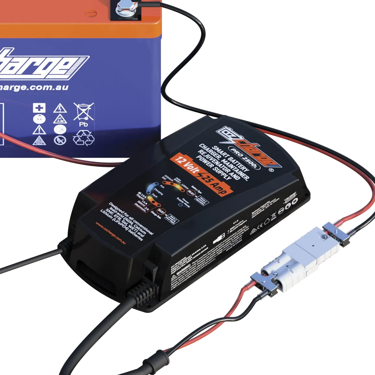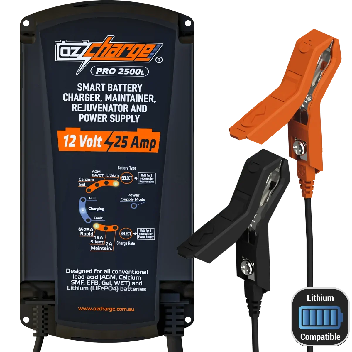 POWERING YOUR PASSION OzCharge Pro2500L Lithium 25A Battery Charger and maintainer