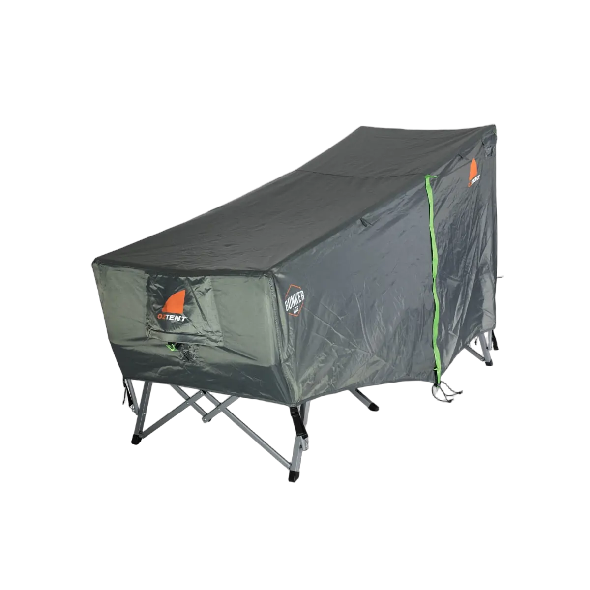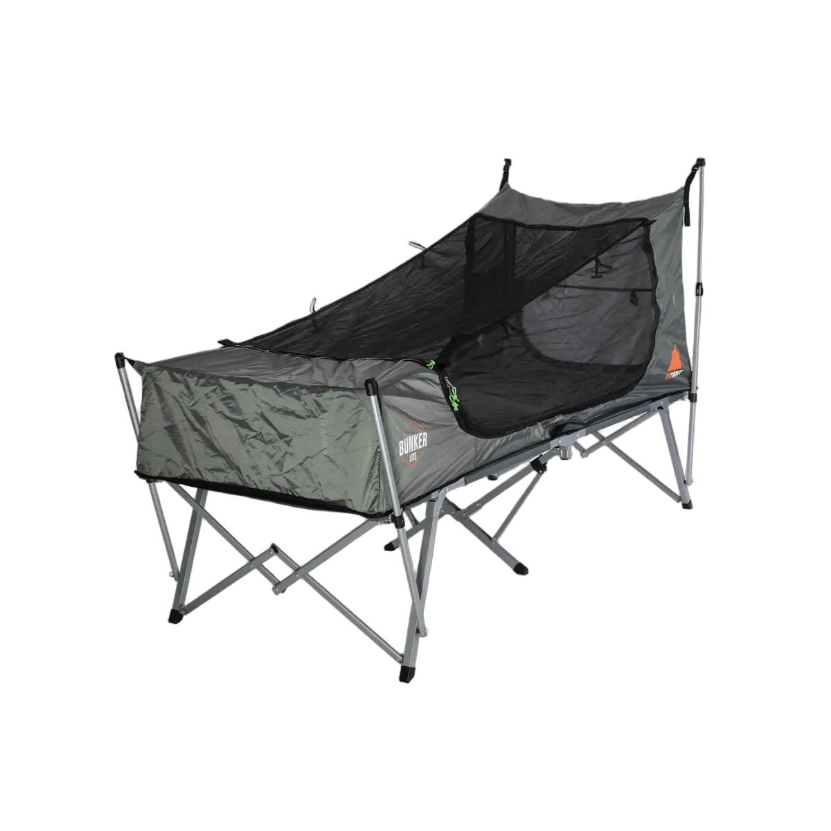 Introducing the new Oztent Bunker Lite. Now built with 210D Ripstop polyester in the largest size available – after all, who doesn't like extra space? It also has some great updates such as integrated guy rope pockets, replaceable mesh screens and extra reinforced cross leg frame structure whilst still maintaining the features you know and love - fast and easy setup, internally padded bed, 150kg weight rating and 100% waterproof material. Perfect for your next solo camping adventure!