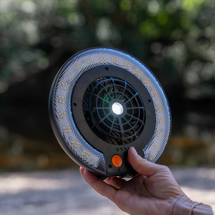 Meet the OZTENT LED Fan Light Series II, the ultimate multi-functional fan and light for your outdoor adventures. This versatile 3-speed fan offers four unique LED lighting settings: spotlight, ring-light, dual brightness options, and a special mosquito-repellent mode with orange lighting to help keep insects at bay. With three fan speed options, you can adjust the airflow to your liking, keeping your space cool and reducing condensation in any shelter.