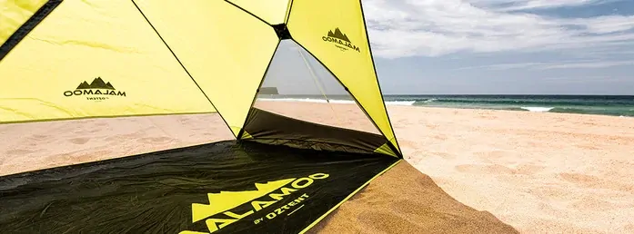 The Malamoo 2-Hub Beach Shelter is an easy to use, practical and comfortable beach shelter. OZTENT’s Rapid Hub Technology ensures that you can setup and pack down this shelter in only seconds. With a large floor area, 2 metres by 1.5 metres, you have a very comfortable area to enjoy the beach while being fully protected with a UPF 50+ cover.