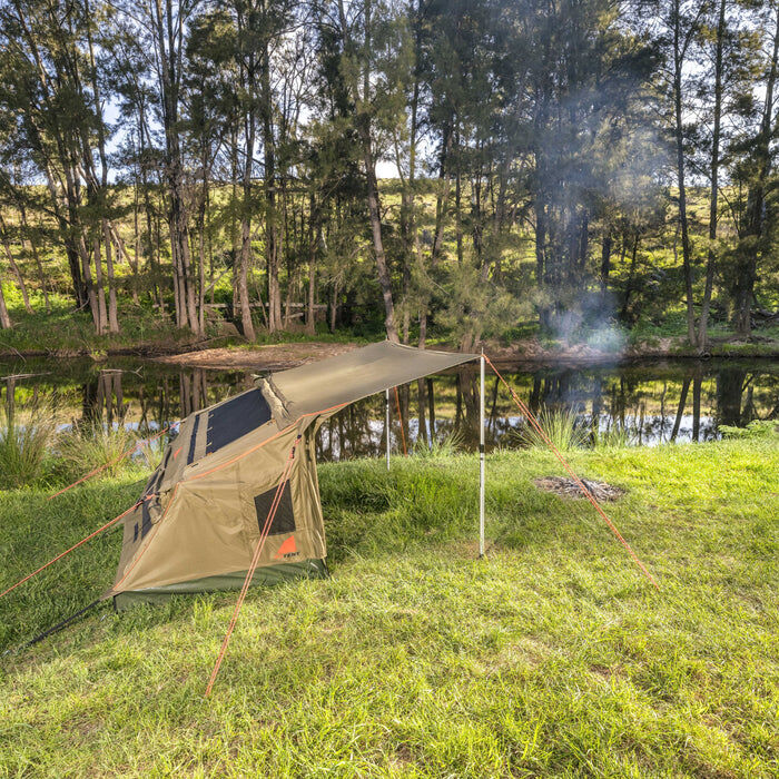 The Oztent RS-1 King Single Swag is the ultimate one-person shelter. Using our innovative 30-second folding frame, the RS-1 Swag easily sets up and packs down within 30 seconds, giving you extra time and headspace to enjoy the beauty of great outdoors. Made from waterproof and fire-retardant ripstop polyester material, the RS-1 Swag provides a fast and effective barrier to the elements.