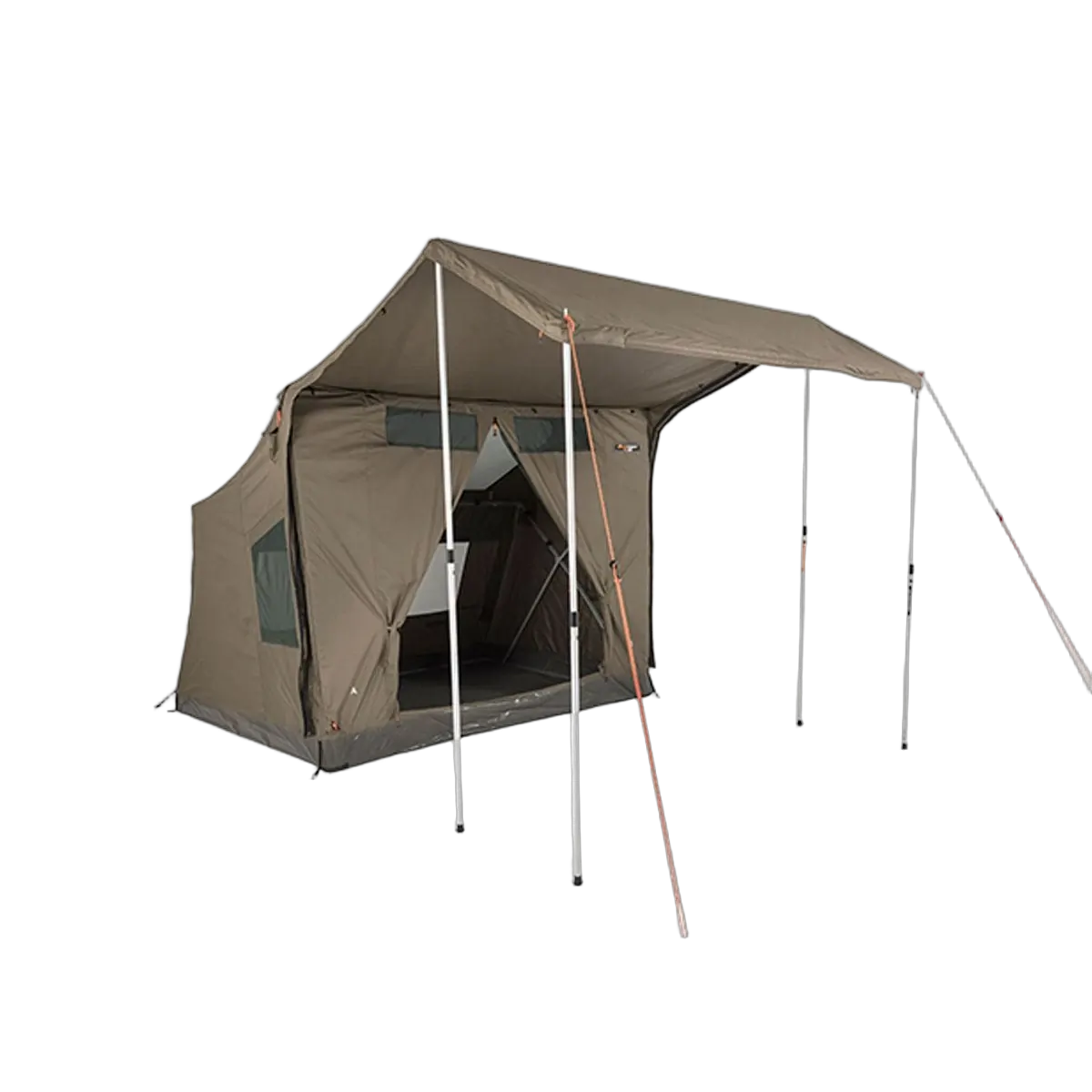 Introducing the Oztent RV Plus range - the first major update to the Oztent RV in 15 years. Just like the original, it still takes 30 seconds to setup, is built from high quality 8-oz polycotton canvas, features a large attached awning and is super modular but now we’ve added a SkyMesh Skylight, included the fly and all the extra poles you need to peak the awning plus a brand new rain cover for your carry bag! We’ve also gone and reconfigured the zips on the awning to make it even more waterproof when attaching accessories and added light loops to hold your LED lights underneath the awning and inside the tent. Time for an upgrade? The Oztent RV Plus is for you!