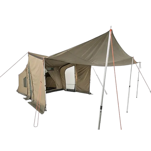 The OZTENT SV-5 Max Peaked Side Panels are designed to give you extra privacy and wind protection for your awning. The OZTENT SV-5 Max Peaked Side Panels come as a set of two panels and help create a higher peak in the awning. This design allows for rain to easily run off the awning without lowering the front poles. They simply and easily zip to the awning and side of the tent. They are made from the same waterproof Ripstop polycotton canvas as the tent. The Peaked Side Panels also have a zippered canvas door and a zippered No-See-Um mesh screen door in each side.